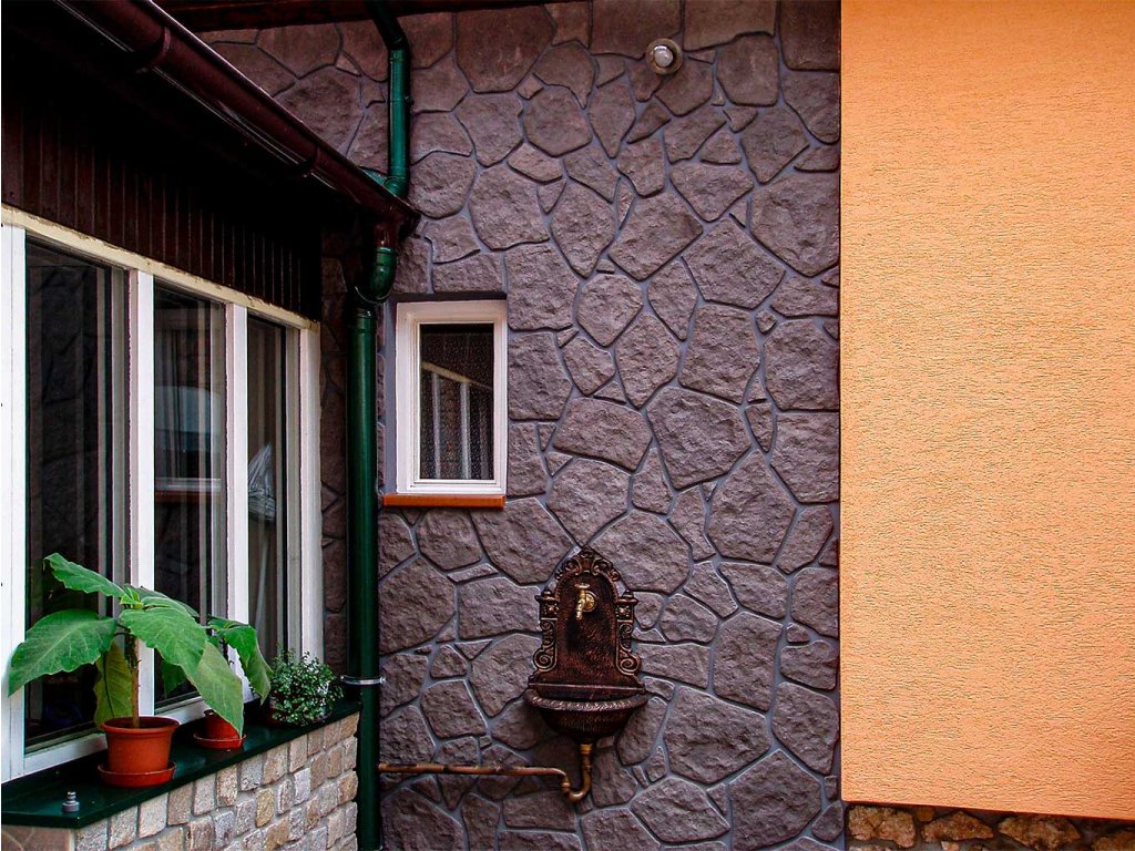 Umělý kámen, znázorňující nepravidelné pískovcové placáky s charakteristicky štípaným povrchem. Tento umělý pískovec se dodává namíchaný z kamenů nepravidelných velikostí, zaručujících tradiční přírodní vzhled. Kladení kamene je náhodné a plně v rukou obkladače. Doplňkem tohoto fasádního obkladu jsou rohové prvky dvou velikostí. Tento betonový obklad je populární k obkládání soklů, plotů, krbů a široké uplatnění nachází i v interiérech.