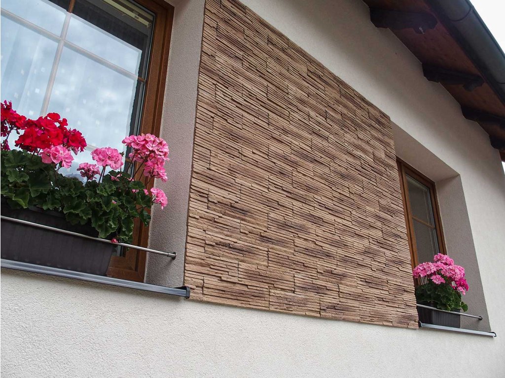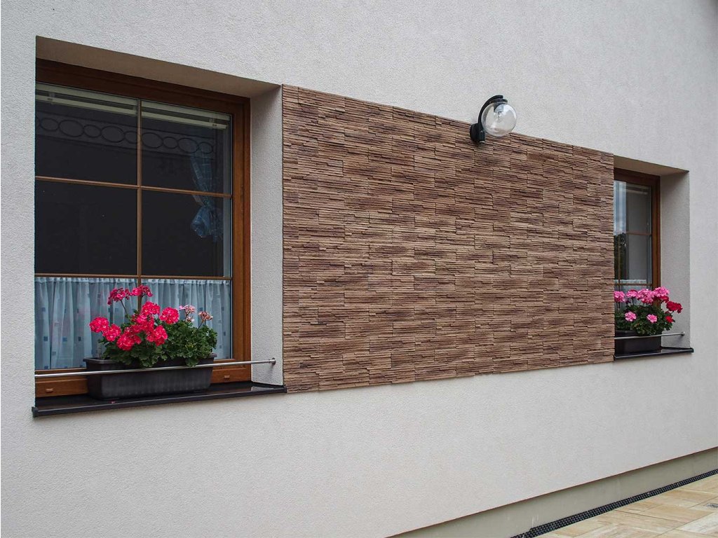 Vodorovně vrstvené zdivo z úzkých pásků se štípaným povrchem vyvřelé horniny. Bezespárová aplikace obdélníkových segmentů stejné velikosti zaručuje rychlou montáž a kompaktní vzhled tohoto umělého kamene. Jako doplněk se k obkladu vyrábí rohové prvky ve tvaru "L".